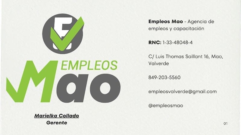 Empleos Mao es un negocio de servicios profesionales disponible en Pedro Sánchez, Republica Dominicana. Ofrece atencion de calidad a clientes locales y visitantes. Encuentralo en Pasa y Mira, el directorio de negocios de Republica Dominicana.