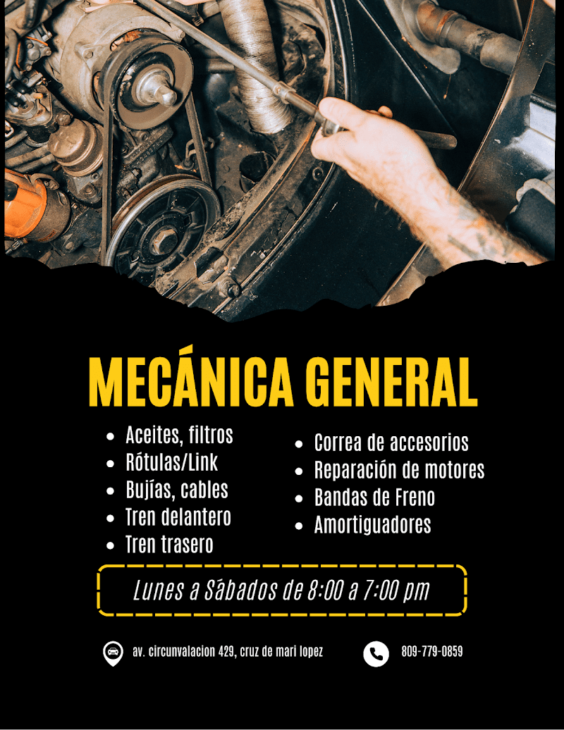 Taller de mecánica Cruz (kelvin Cruz) es un establecimiento de Taller mecanico ubicado en Cenovi, Republica Dominicana. Brinda servicios de reparacion vehiculos, mantenimiento, cambio aceite, alineacion. Ideal para residentes y turistas que buscan Taller mecanico en Republica Dominicana.
